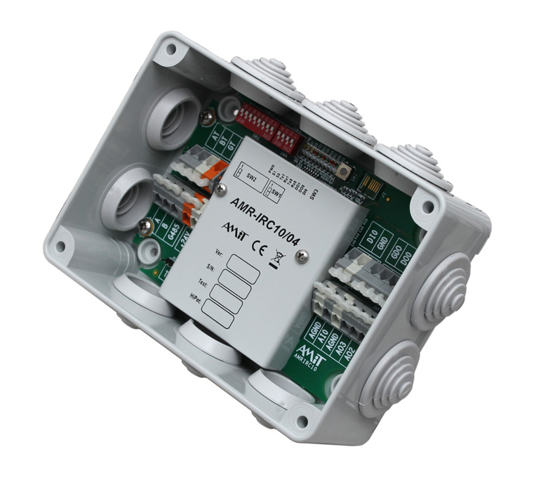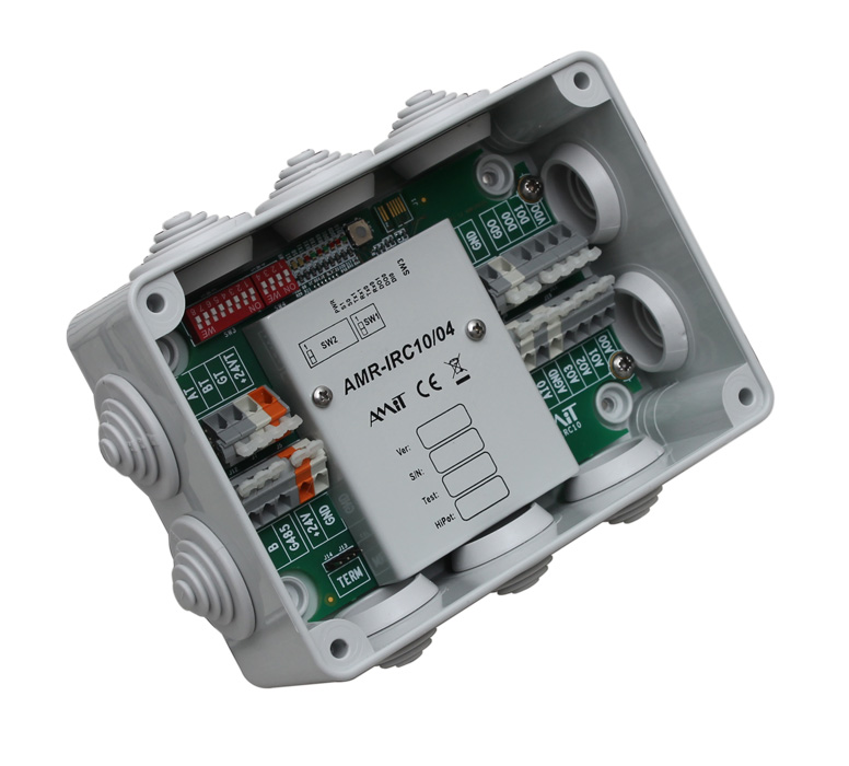 Az AMR-IRC10 szobai vezérlő kifejezetten szellőztetés szabályzására lett kifejlesztve. Egy AMR-OP70, AMR-OP71 vagy AMR-OP3x HMI-vel összekapcsolva a helyiség lokális vezérlőközpontja lehet. A másik RS485-ön keresztül pedig egy felsőbbrendű irányítási hálózathoz kapcsolódhat. Ez rendezettebb, egyszerűbben átlátható felépítést eredményez. Az eszköz egy telepítődobozban foglal helyet IP55 védelemmel ellátva.